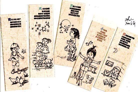 我也由他的書籤中得到啟發, 且開始構思在書籤上畫圖並配上兒歌.